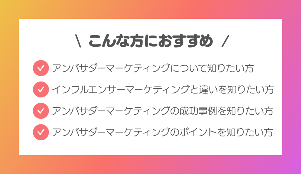 また、後半では施策効果の高いアンバサダーの選び方も詳しく解説していますので、参考にしていただければ幸いです。