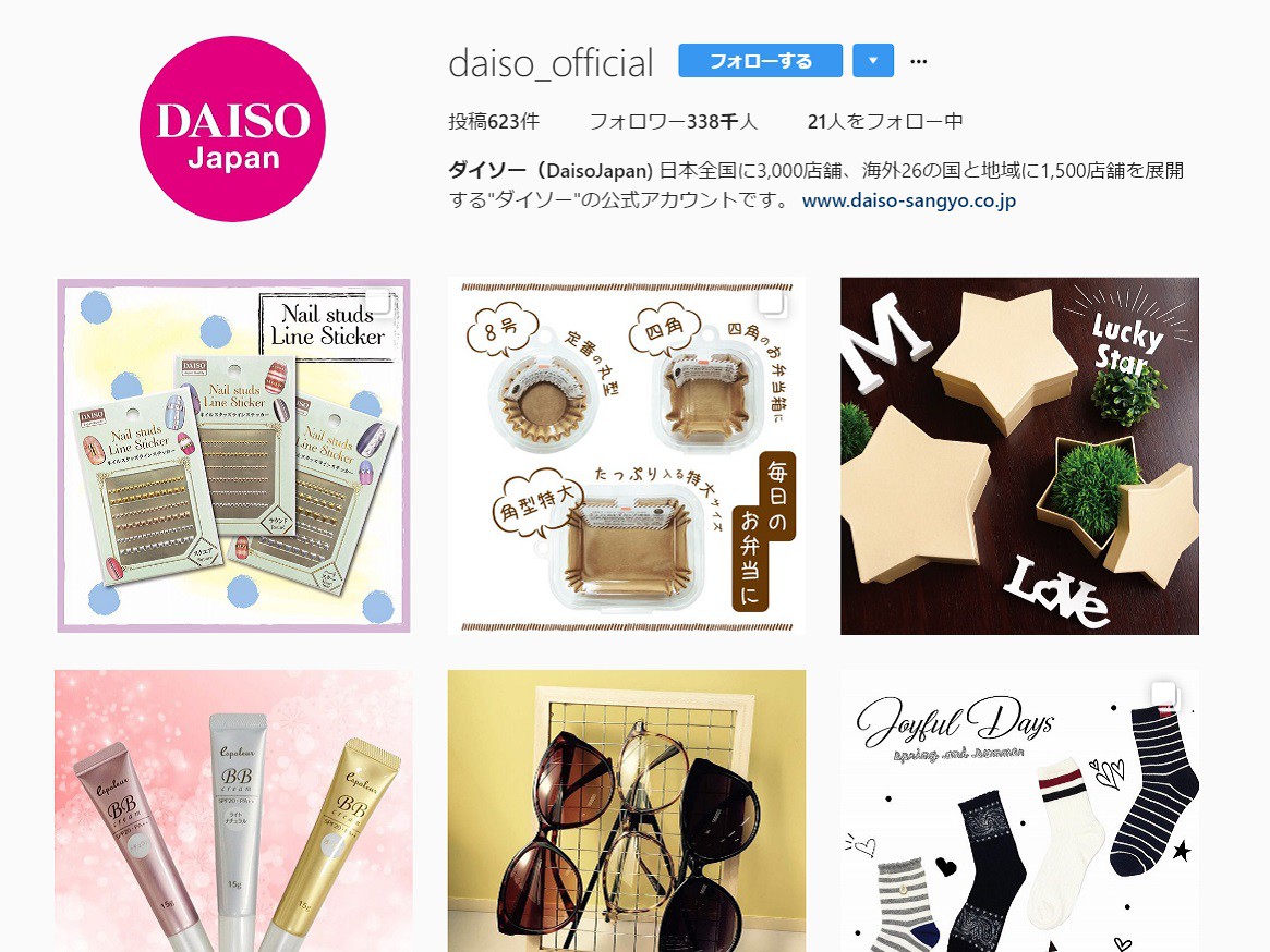 次に紹介するのは人気100円ショップ「ダイソー」のインスタグラムアカウントです。