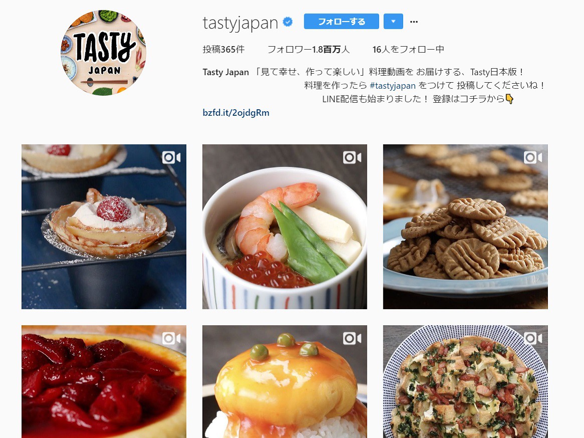 ユニークな料理動画を配信する「Tasty Japan」は、動画内でコラボしたクリエイターをたくさんフォローしています。