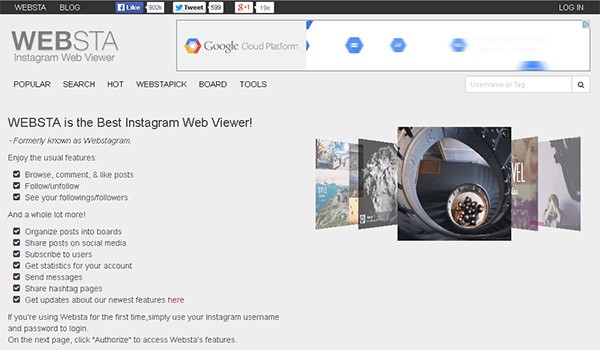 WEBSTAはパソコンからインスタグラムを大画面で閲覧できるビューアーです。自分のインスタグラムのアカウントでログインして人気のユーザーやハッシュタグの検索の他に、アクセス数などの情報がみられました。