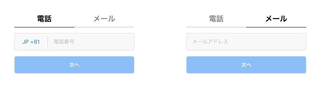 電話番号またはメールアドレスで登録