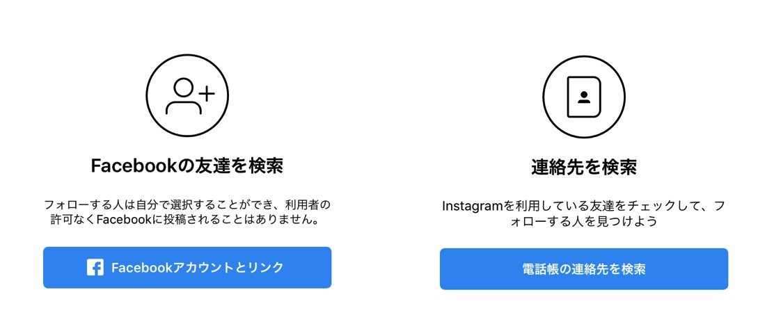 最後に、Facebookの友達や電話帳の連絡先をリンクさせて、ユーザーを検索するかどうかを選択します。
