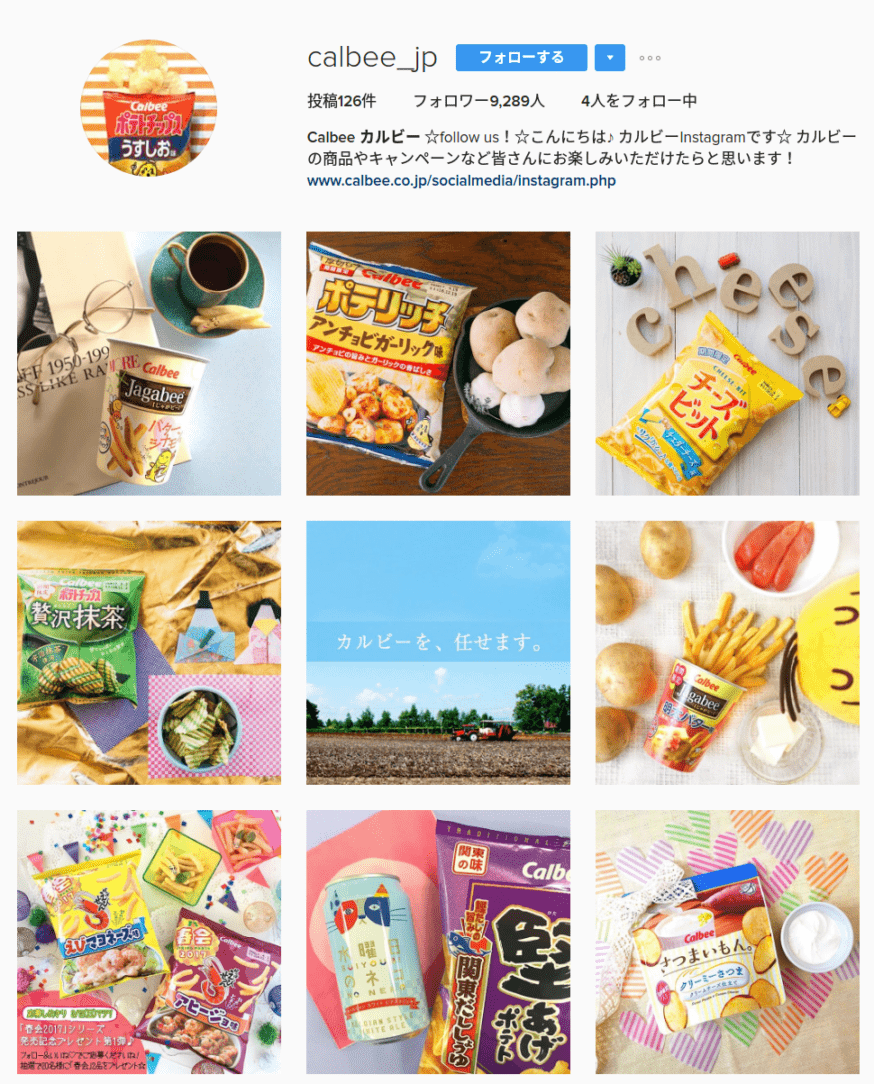 たくさんのファンユーザーを有する「カルビー」。商品紹介やハッシュタグを活用したキャンペーンを行っています。投稿数は少ないながらも、フォロワー数は9,229人を獲得しております。カルビーのインスタグラムでは、ユーザーのコメントに対してしっかりと返答するスタイルを取り入れています。インスタグラムでの情報発信でも、ファンユーザーに対するサービスを徹底しているのが好評となっているのでしょう。