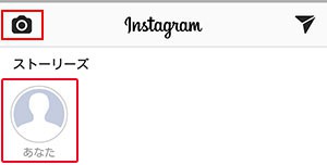 フィード画面で画面左上のカメラアイコンか自分のアイコンをタップして撮影画面を起動します。