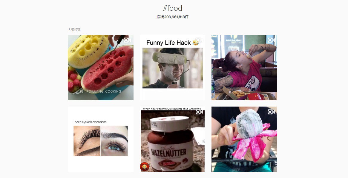 #foodは食べ物系のハッシュタグで人気で、投稿209,961,818件となっています。フード系のハッシュタグとしては他にも#foodstagramというものもあり、22,248,809件の投稿となっています。美味しそうな料理の写真や食材の写真、食べている姿など、投稿する人によってその個性はさまざまです。