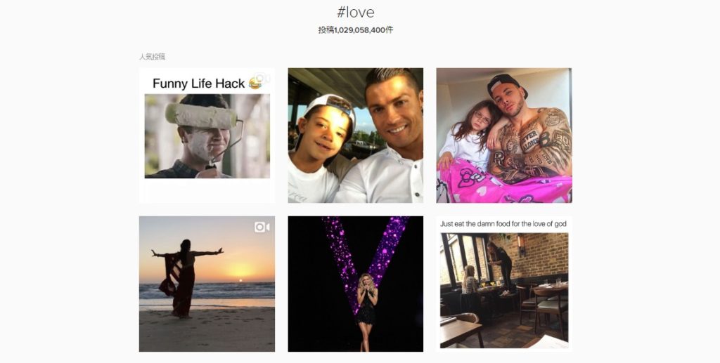 多くのシーンで利用できる万能なハッシュタグも人気です。たとえば投稿1,029,058,400件の#love、投稿353,612,414件の#happy、投稿225,052,544件の#smileなど、使い道が多いハッシュタグは投稿数も必然的に多くなっています。