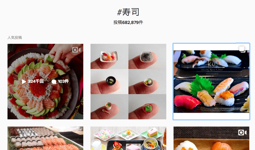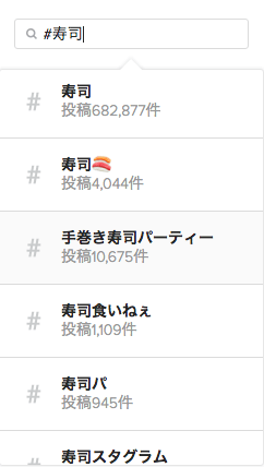 インスタグラムの場合、同じ意味のハッシュタグでも表記方法が変われば検索ボリュームも変わってきます。例えば「#寿司」と入力するか「#SUSHI」と入力するかで、表示される投稿の数は変わってくるのです。