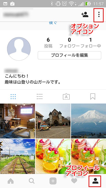 非公開アカウントに設定するには、プロフィール画面を開き右上のオプションをタップします。