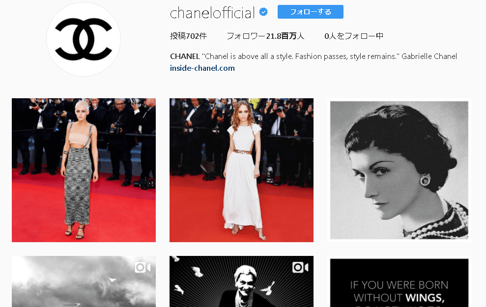 2014年10月にアカウントを開設したCHANEL。2017年5月現在、フォロワー数は2180万人を超えています。