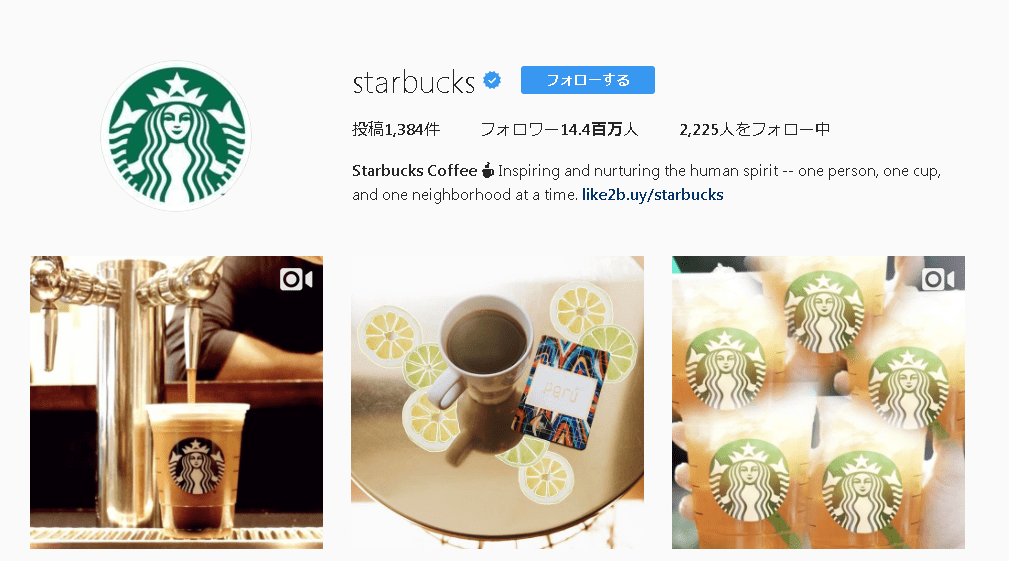 スターバックスの公式Instagramは、世界中から質の高い写真が集まることが特徴です。