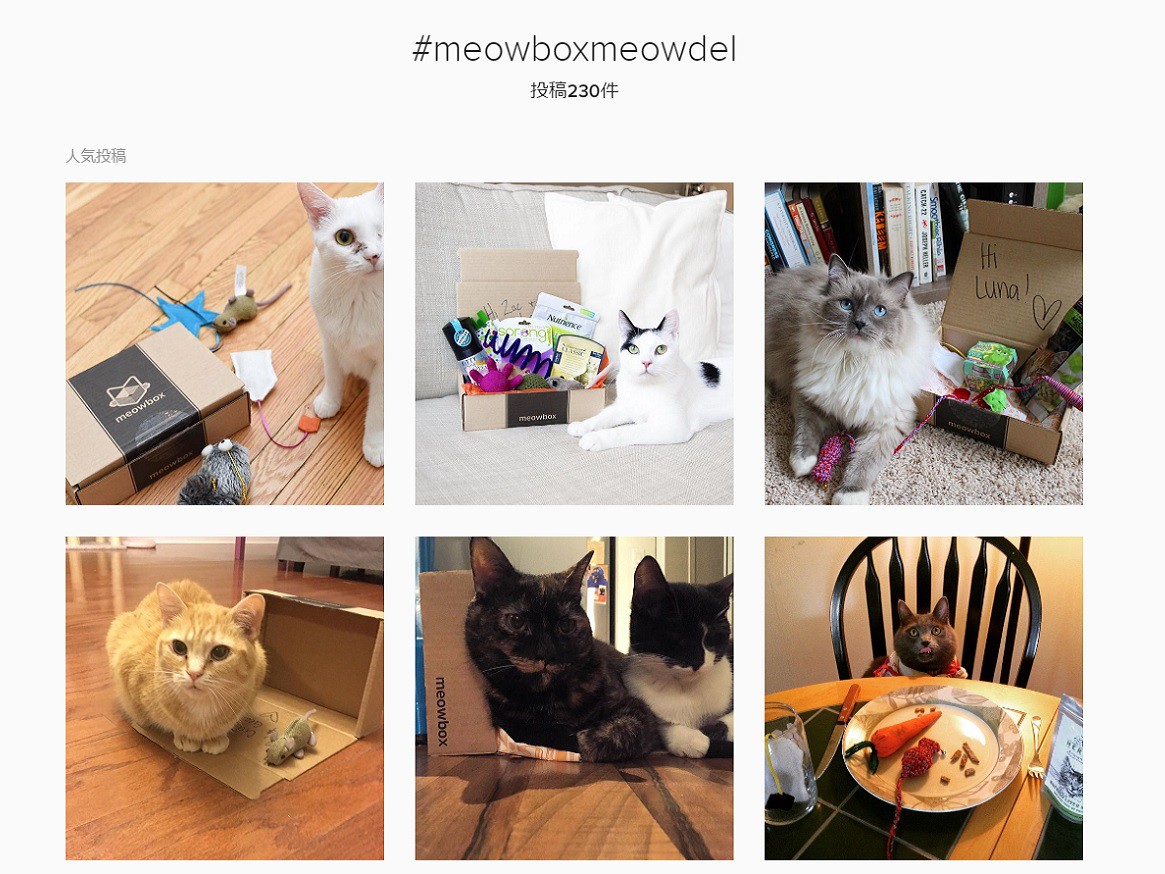 Meowboxは月に1度ユニークなネコグッズの配達サービスを提供する企業。新しく猫のモデルを募集するために、インスタグラムで写真投稿キャンペーンを実施しました。