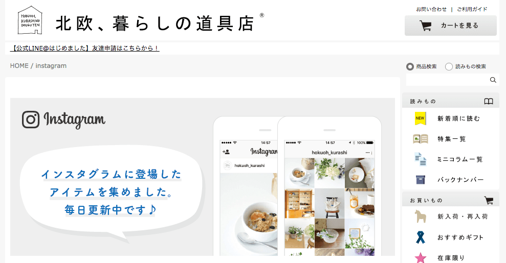 思わず見とれてしまう北欧テイストのインテリアや雑貨写真をインスタグラムで見ることができ、まさにオンラインカタログとしてインスタグラムが活用されています。